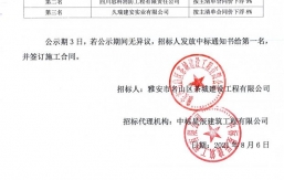 就雅安市名山區(qū)黑竹超限檢測站改造工程電子汽車衡招采,根據(jù)有關法律、法規(guī)、規(guī)章的規(guī)定,經(jīng)雅安市名山區(qū)茶城建設工程有限公司競爭性談判比選流程,評審工作已經(jīng)結束,中選人已經(jīng)確定,現(xiàn)將中選結果公示如下:中選單位名稱:重慶匯卓電子衡器有限公司中選價:279500元(大寫:貳拾柒萬玖仟伍佰元整人民幣)進場時間:待甲方通知中選質量要求:合格自中選結果公示之日起一個工作日內,對中選結果無異議的,采購人將簽發(fā)中選通知書,并在五個工作日內簽訂合同。雅安市名山區(qū)茶城建設工程有限公司2021年10月29日...